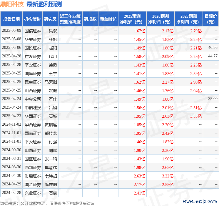 以下是详细的盈利预测信息: